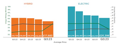 HYBRIDS experienced the biggest price fall of any fuel type in Q2 of 5.6% (£1,198) despite average age falling to 47 months and 45,786 miles. Because EV prices are falling, hybrid demand has been affected, with more used car buyers moving straight to electric from petrol or diesel rather than using a hybrid as a stepping stone.