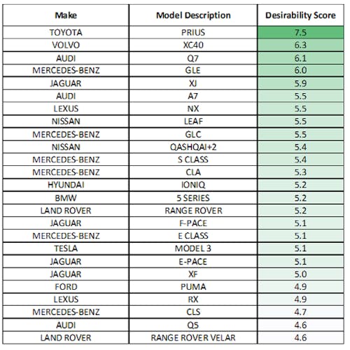 Aston Barclay has revealed its latest November used car desirability Index, with the Toyota Prius the most in-demand model across both its physical and online auction channels.
